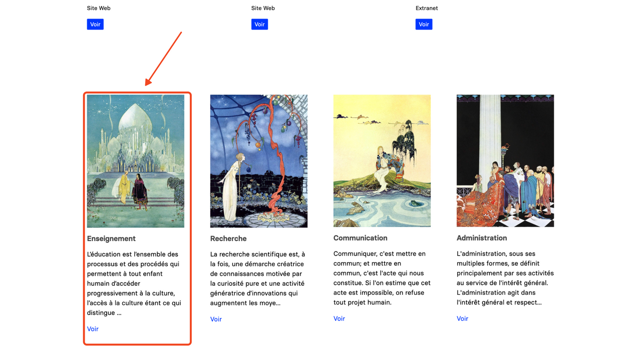 Étape 1 - Pour créer des alumni, commencez par cliquer sur la rubrique "Enseignement" dans le tableau de bord.