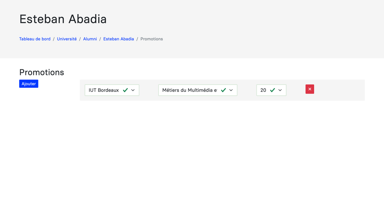 Étape 3 - Sous étape 1 - Vous pouvez modifier la promotion de l'alumnus, en rajouter ou en supprimer.