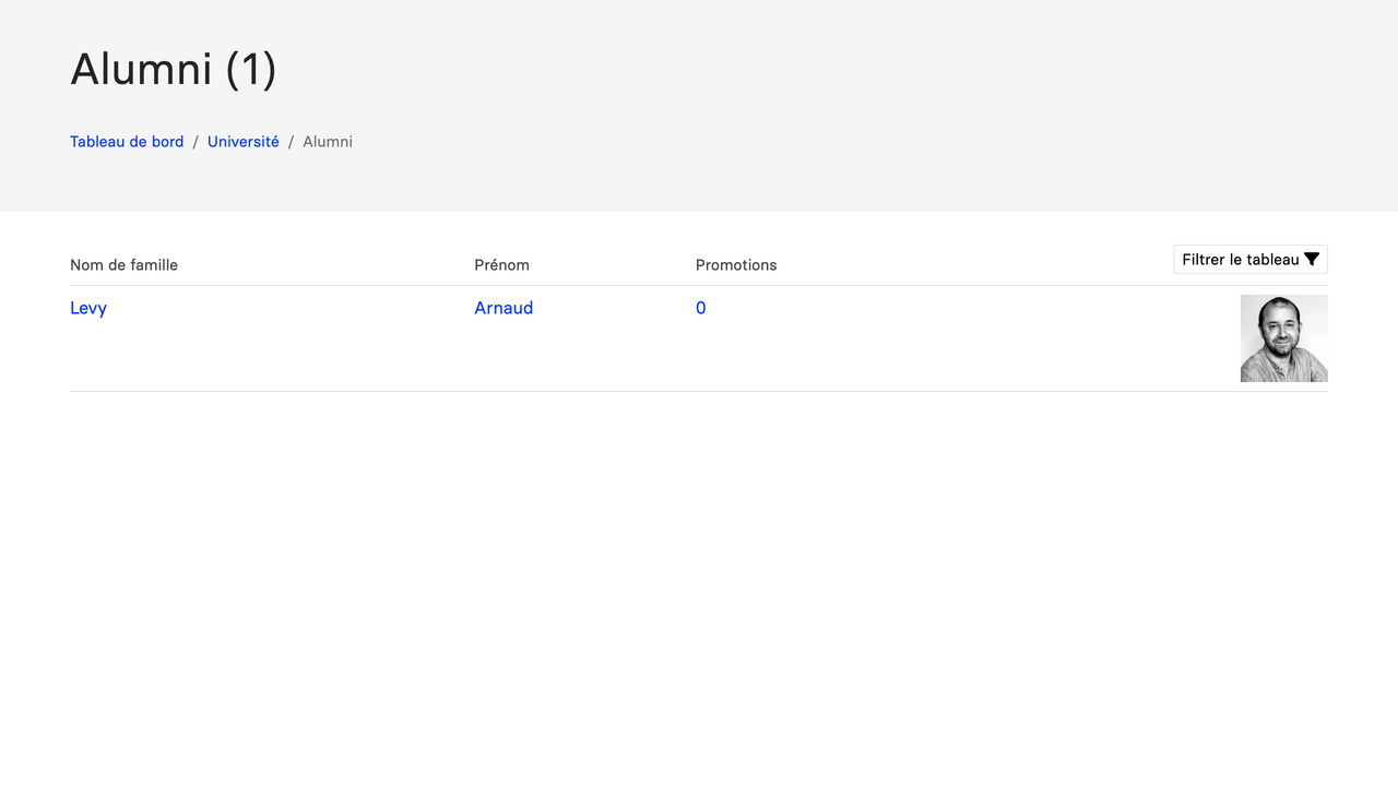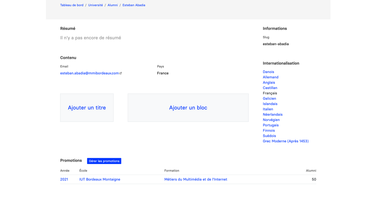 Étape 2 - Vous accédez à la fiche de l'alumnus sélectionné.