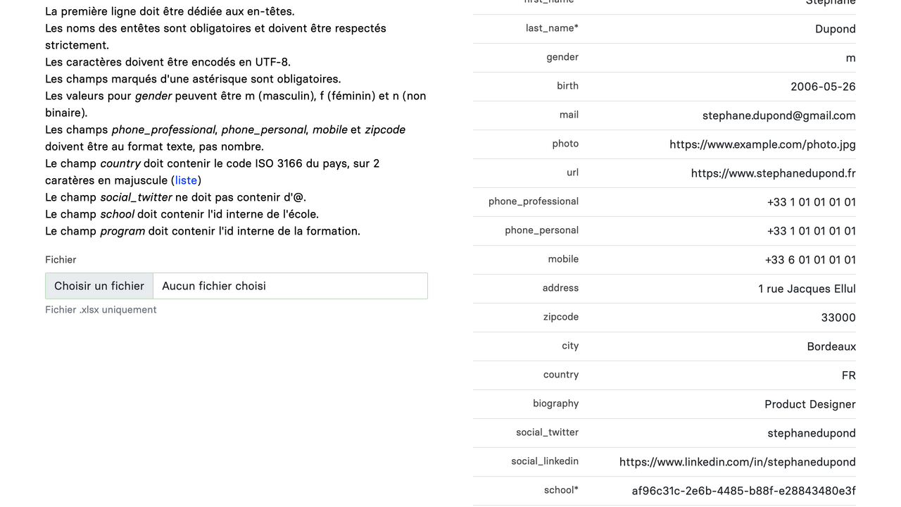 Étape 4 - Vous disposez de toutes les informations nécessaires pour préparer votre fichier en vue d'une importation parfaite.