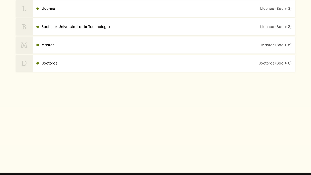 Vous arrivez sur la liste des diplômes, cliquez sur un diplôme pour le modifier.
