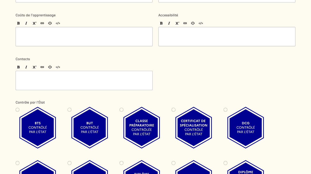 Vous avez accès à une fiche pour saisir les informations du diplôme que vous souhaitez ajouter. Vous pouvez ajouter des logos de certifications reconnues.
