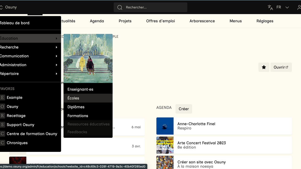 Pour créer une école, commencez par cliquer sur la rubrique "Éducation" dans le tableau de bord.