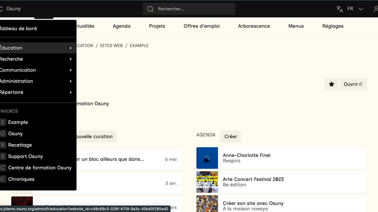 Pour créer une formation, commencez par cliquer sur la rubrique "Éducation" dans le tableau de bord.