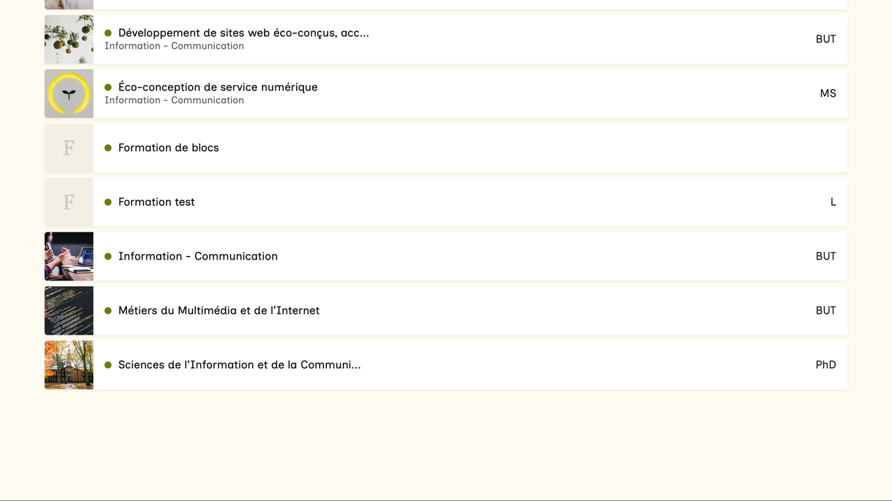 Vous pouvez gérer ici les formations de votre établissement. Vous pouvez ajouter, modifier ou supprimer des formations.