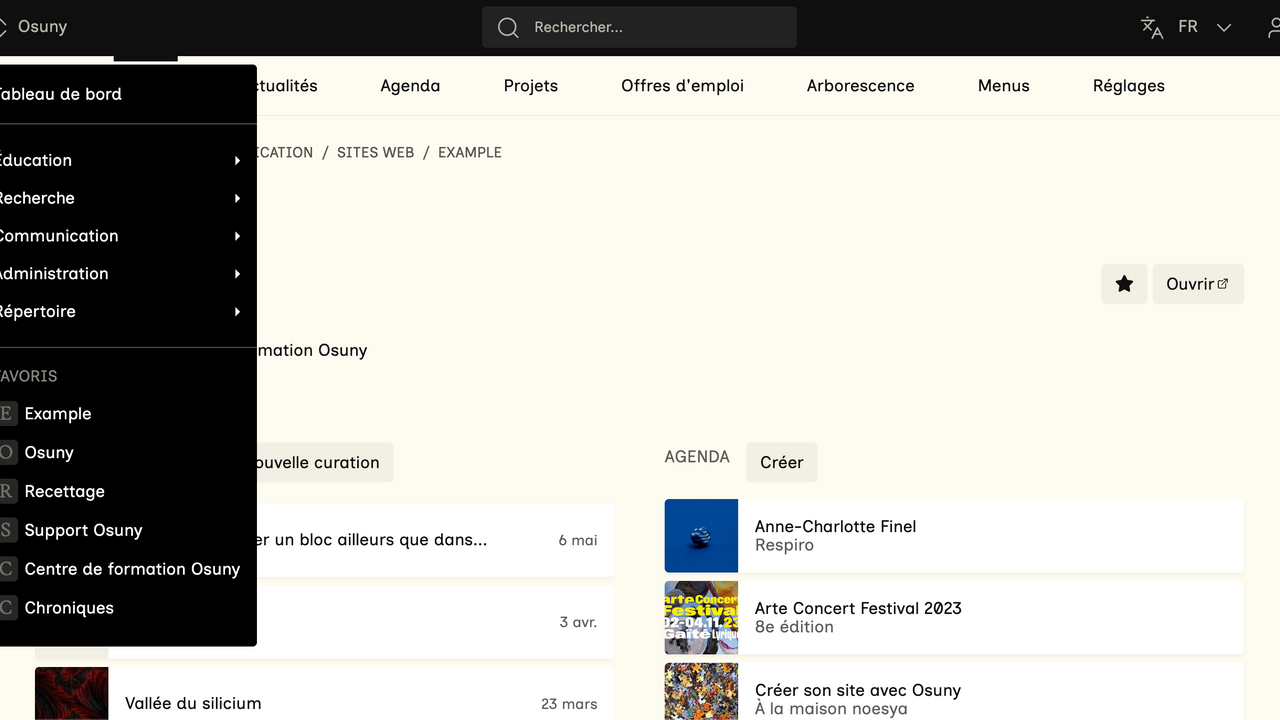 Pour modifier un.e chercheur.e, commencez par cliquer sur la rubrique "Recherche" dans le tableau de bord.