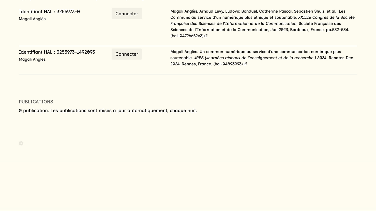 Vous pouvez synchroniser les publications HAL des chercheur.e.s.