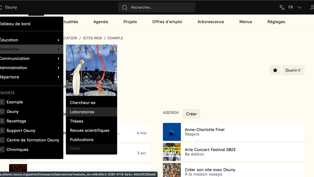 Pour créer un laboratoire, commencez par cliquer sur la rubrique "Recherche" dans le tableau de bord.