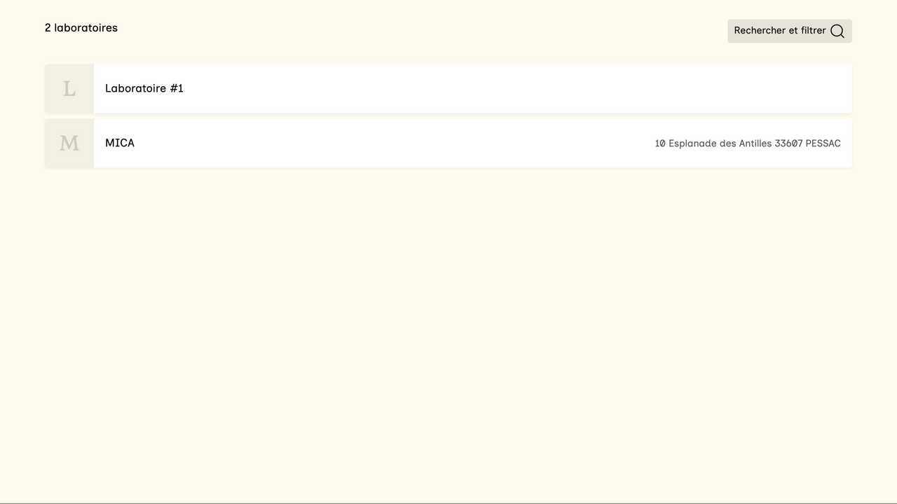 En cliquant sur "Laboratoires", vous avez accès à la liste des laboratoires de l'établissement.