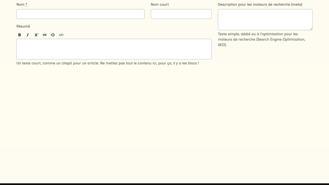 Vous avez la possibilité de créer des axes, de les modifier et de les supprimer.