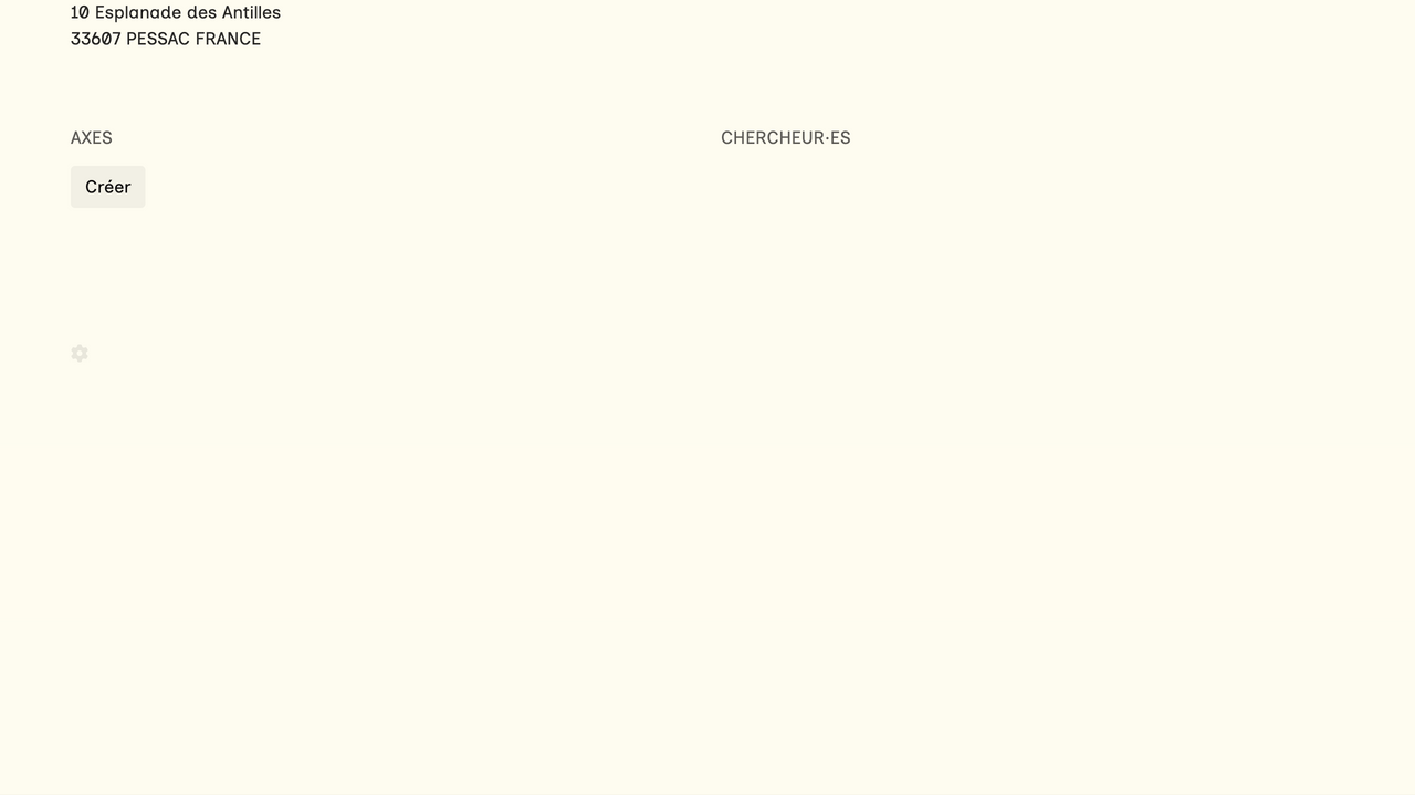 En cliquant sur le nom du laboratoire choisi, vous accédez aux informations du laboratoire. Vous pouvez créer des axes pour votre laboratoire si vous le souhaitez (non obligatoires).
