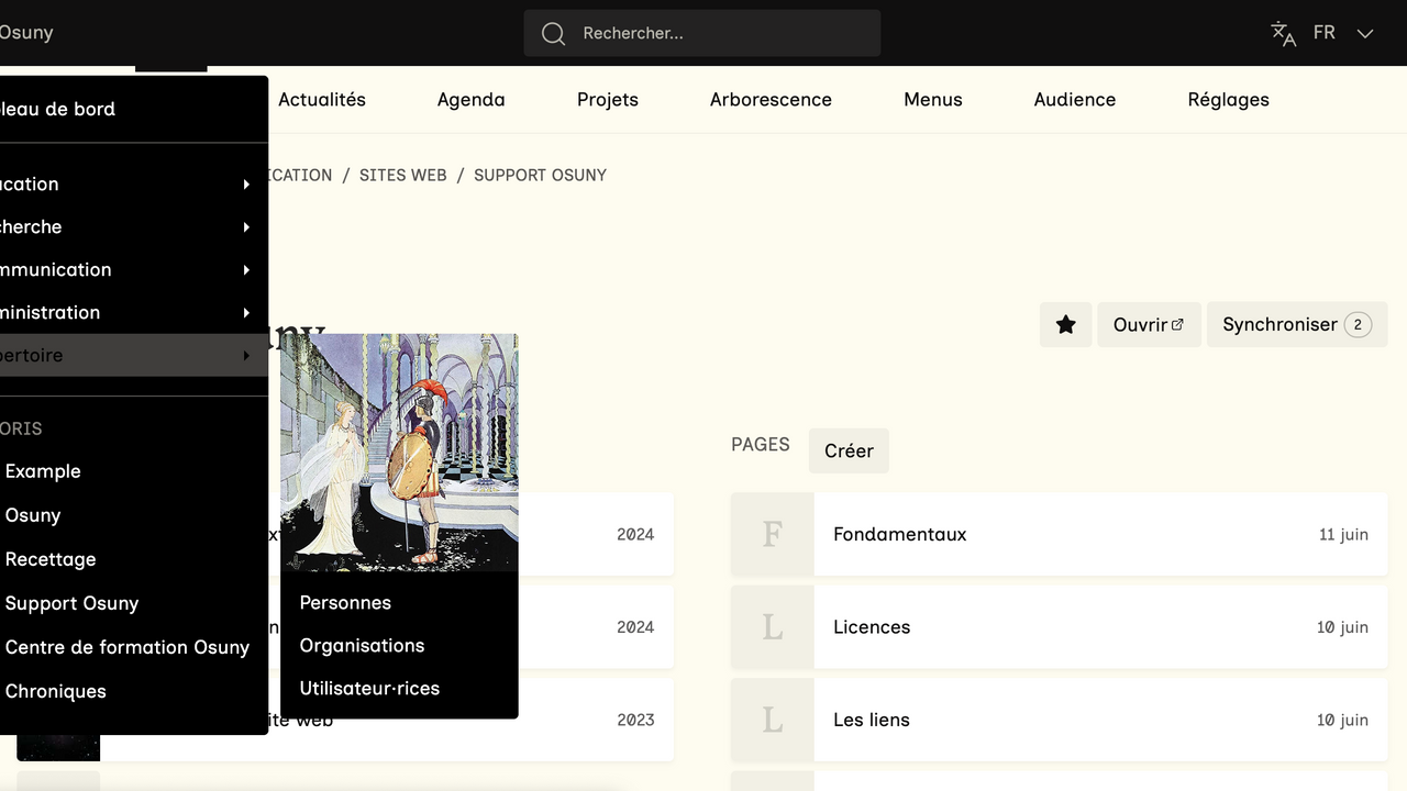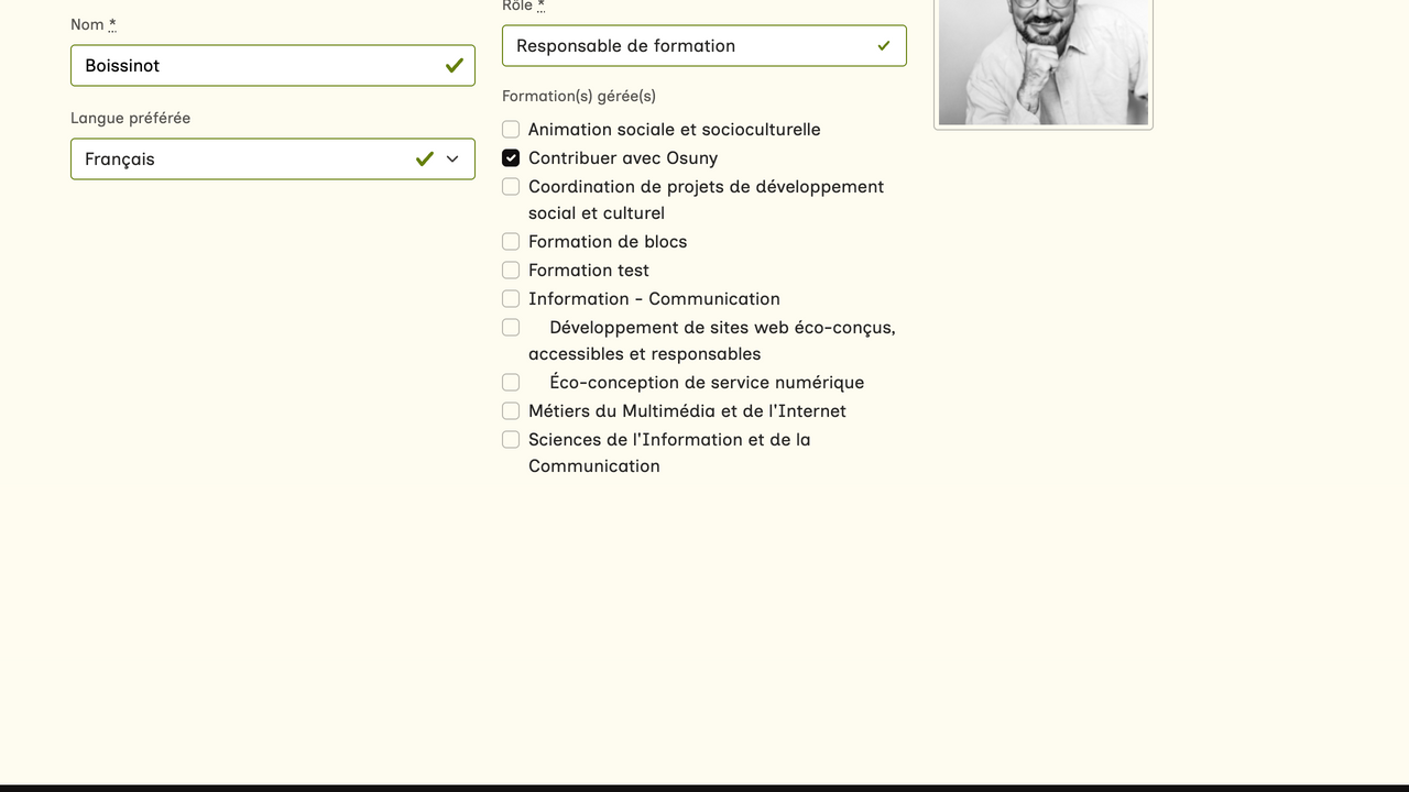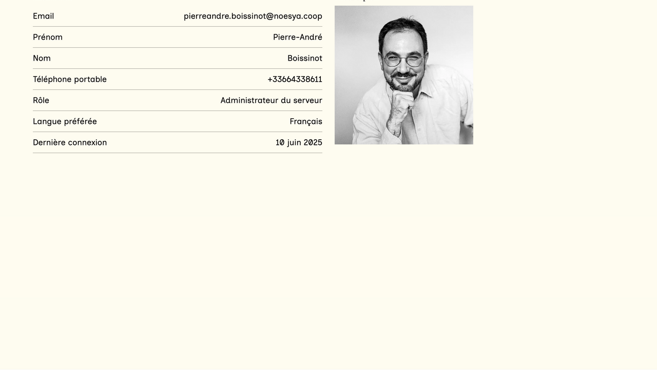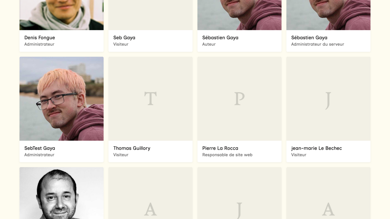 Dans la section "Répertoire" et la sous-section "Utilisateur·rice·s" du tableau de bord, vous avez accès à la liste des utilisateur·rice·s de votre site ou de votre extranet. En cliquant sur le nom d'une personne, vous accédez à sa fiche. Toute personne ayant créé un compte sur l'interface d'administration du site apparaît dans cette section.