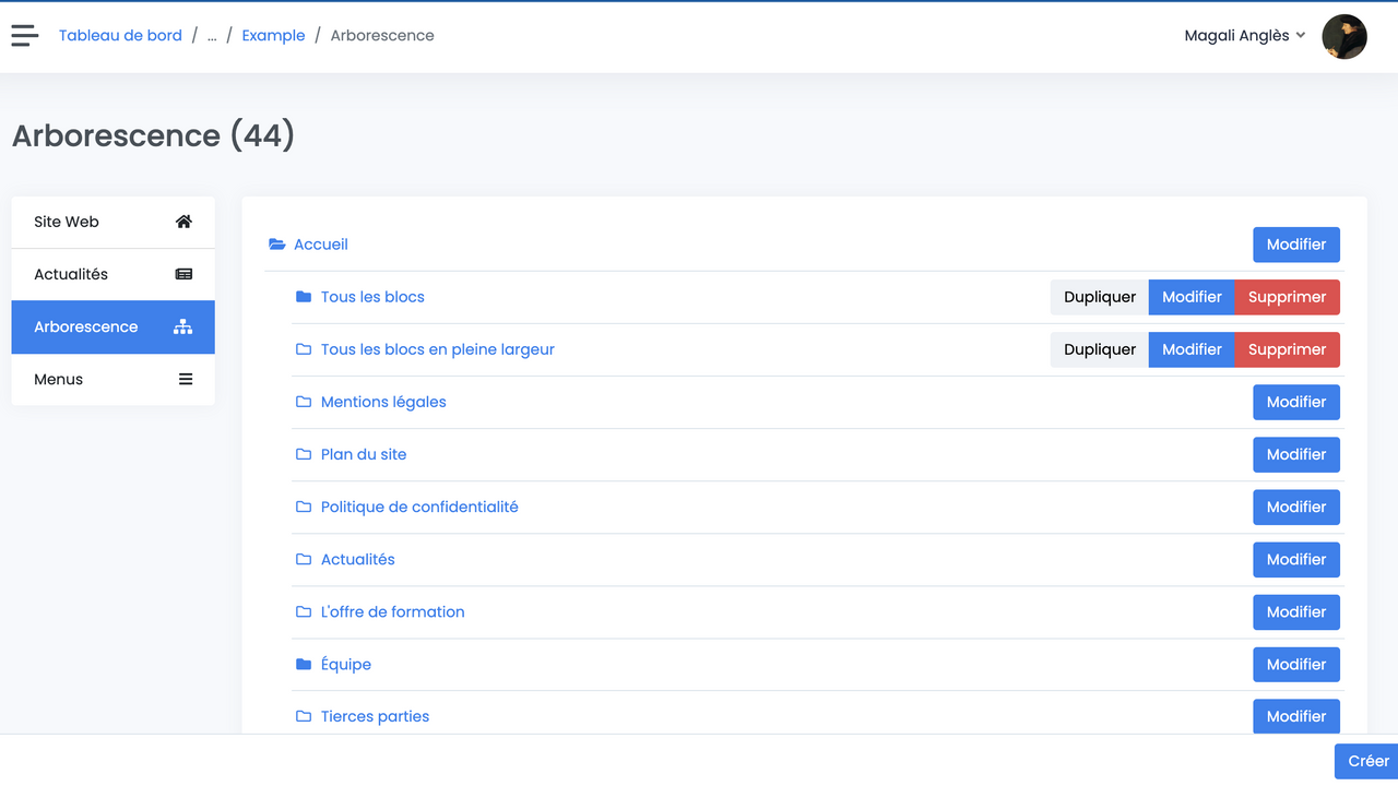 Création d'une page dans l'arborescence en remplissant les champs suivants :