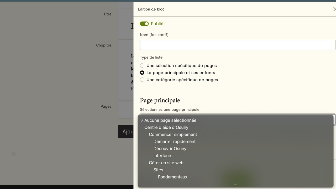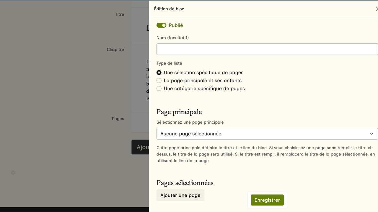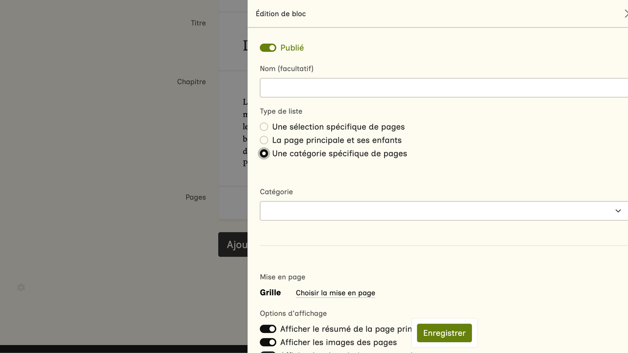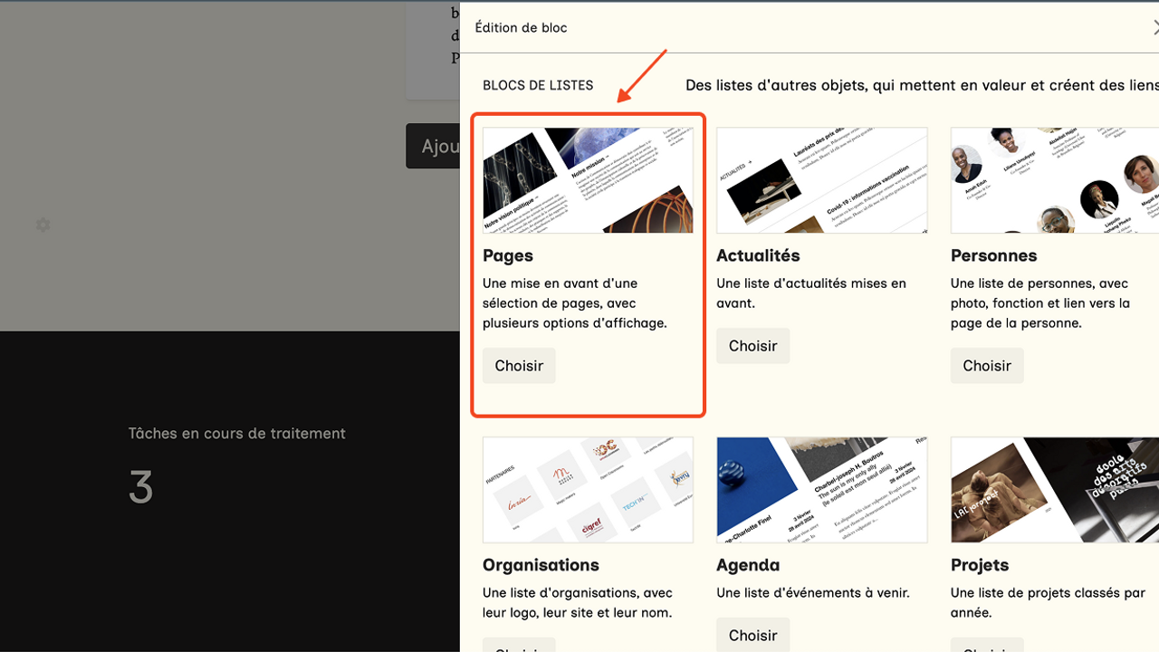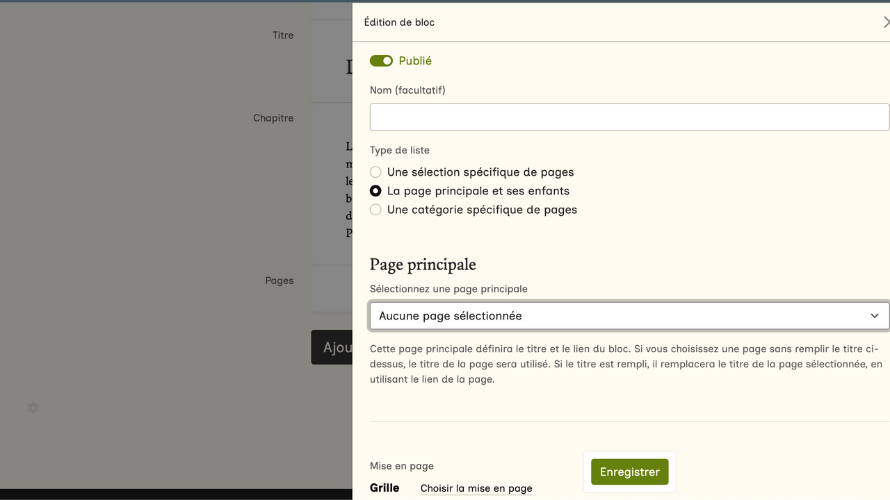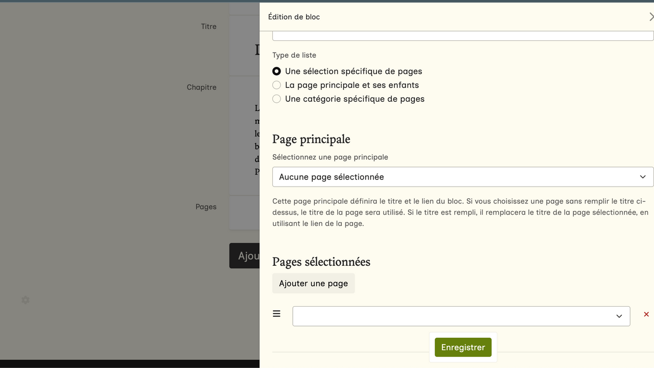 Le bloc Liste de pages va vous permettre de mettre en avant une sélection de pages, avec plusieurs options d'affichage.