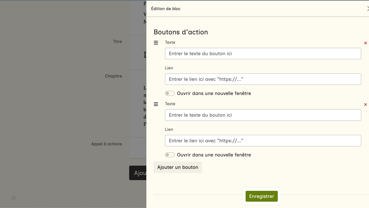 Cliquez sur "Ajouter un bouton" pour ajouter un bouton d'action.