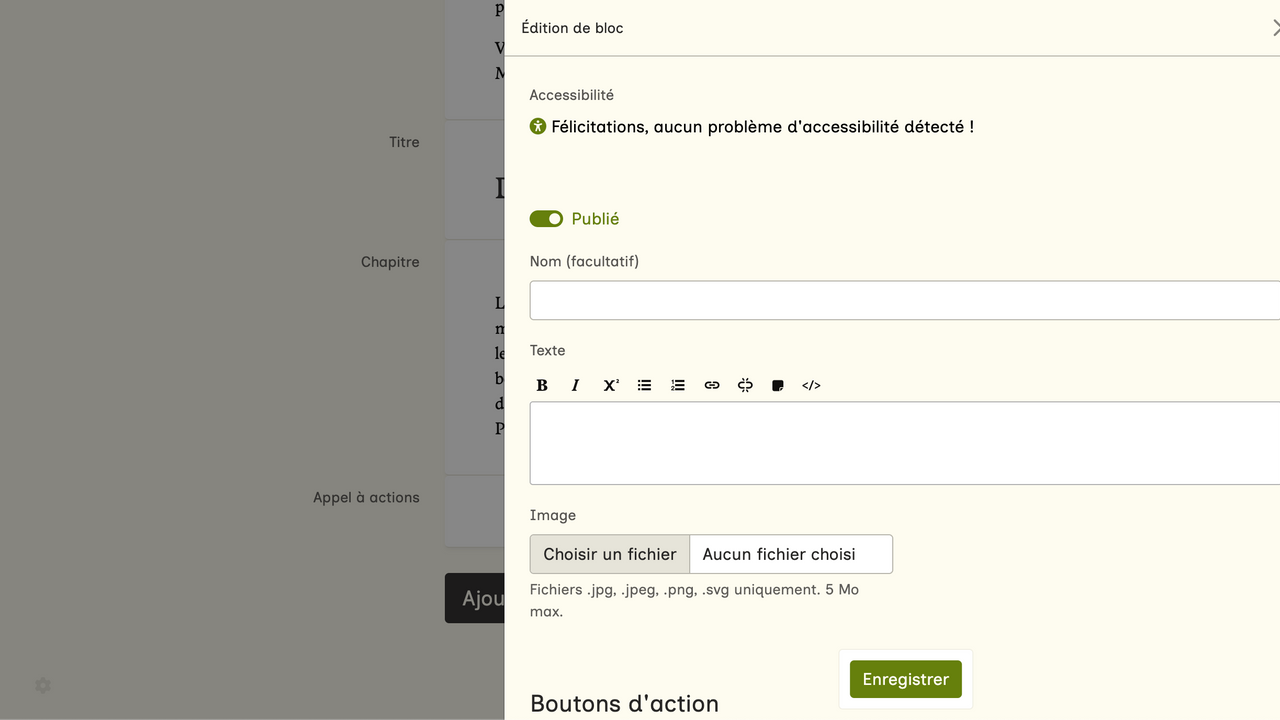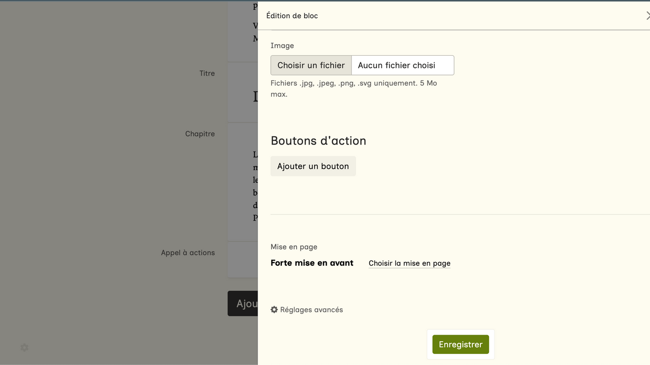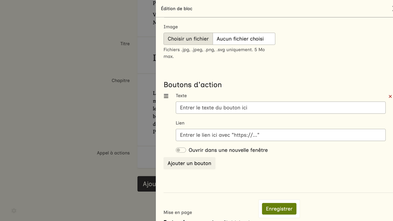 Ce bloc vous permet d'inviter les personnes à agir en mettant en avant des textes, un visuel et des boutons d'action.
