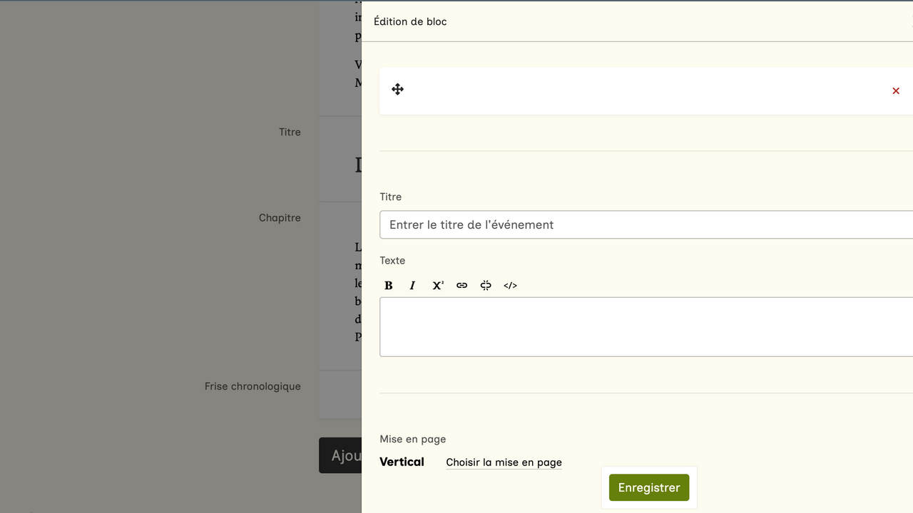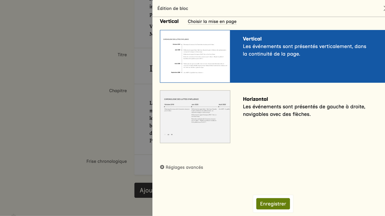 Vous pouvez choisir la mise en page de votre frise : mise en page verticale ou horizontale.