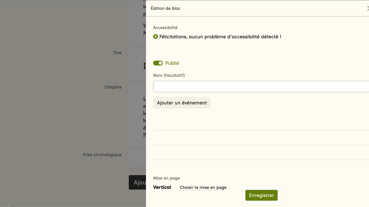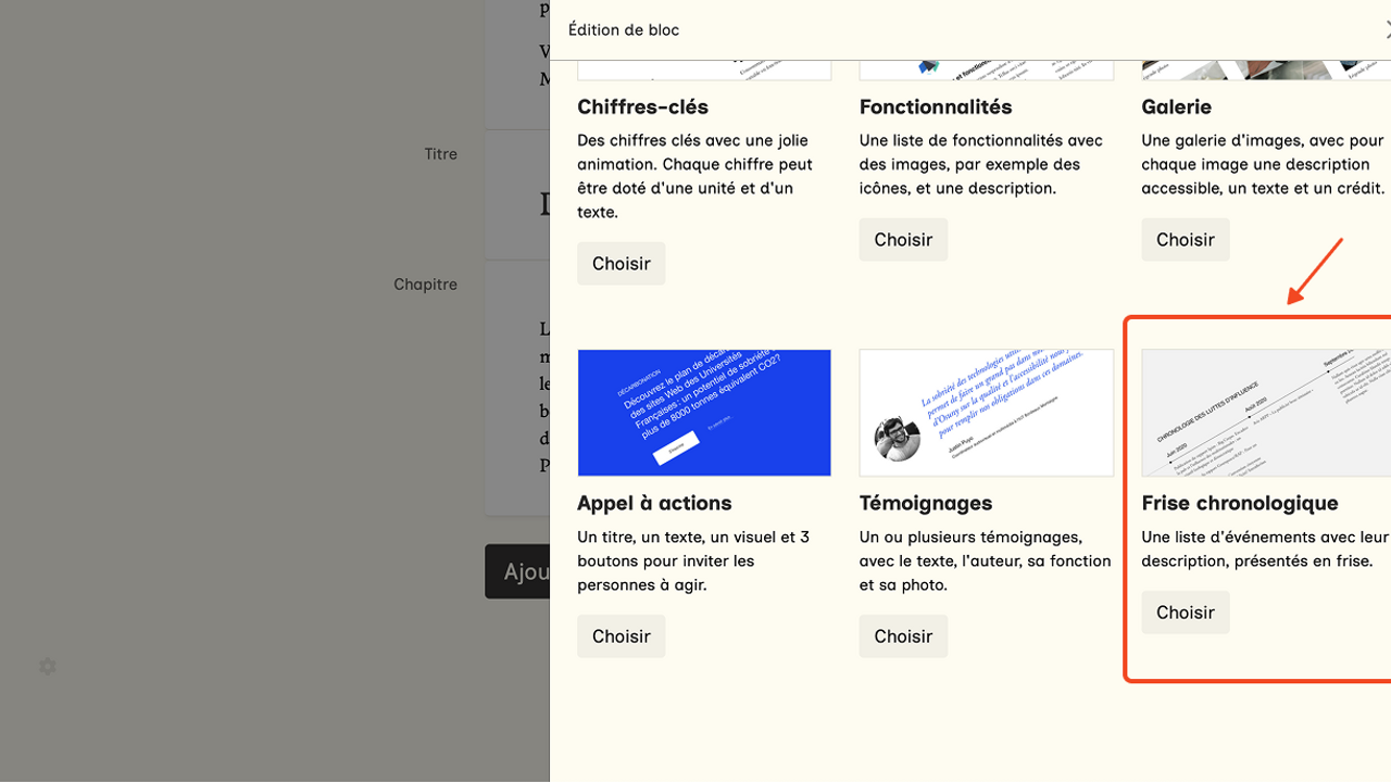 Cliquez sur le bloc Frise chronologique pour l'ajouter.