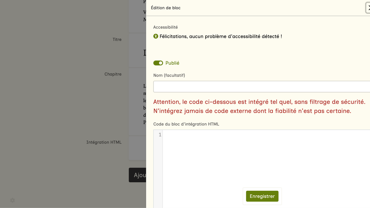 Explication de l'ajout du bloc de contenu Intégration HTML