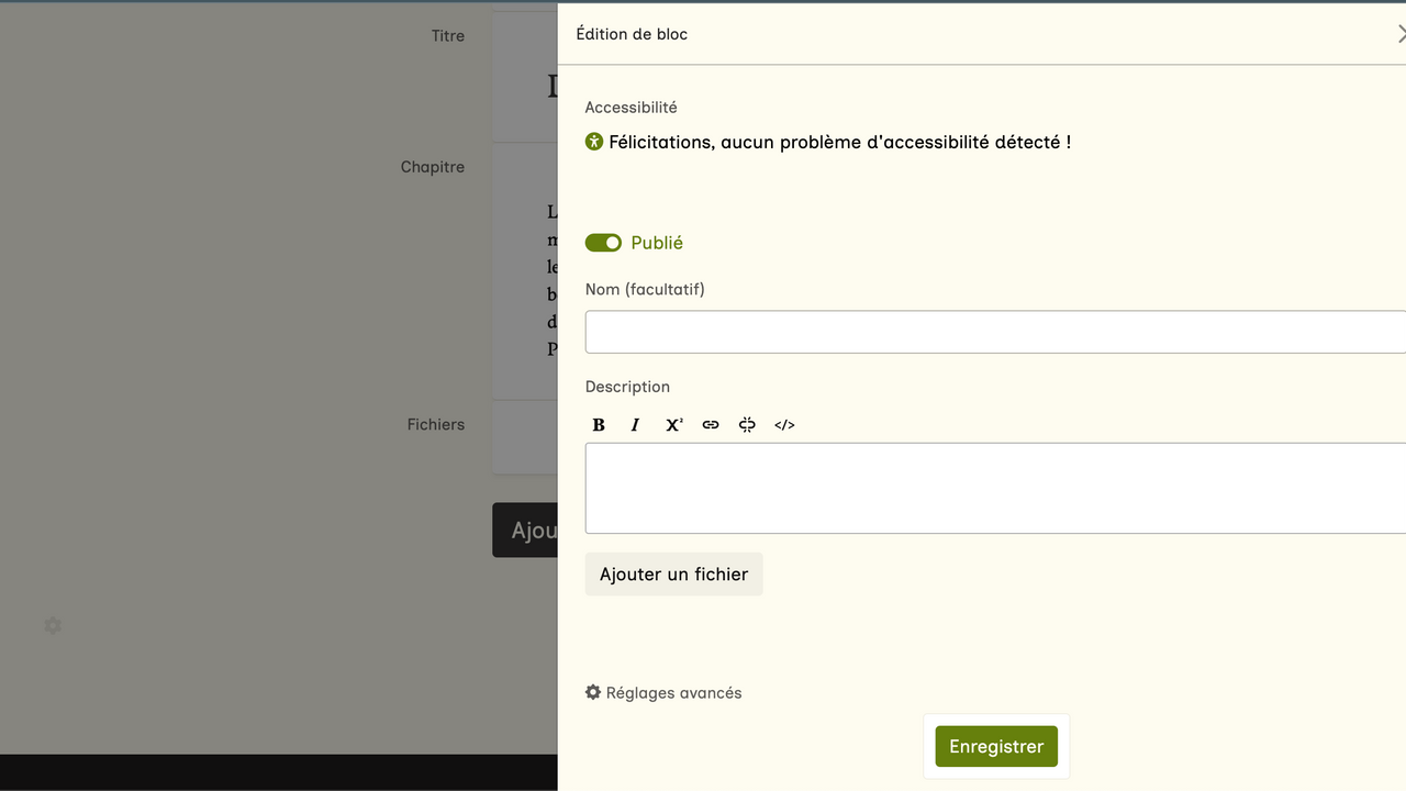 Au clic sur "Ajouter un fichier", vous pouvez ajouter un titre, un fichier et une image.