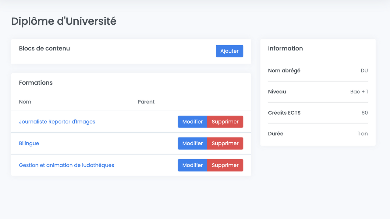 Au clic sur un diplôme, l’utilisateur.rice arrive sur la fiche du diplôme avec les informations suivantes :