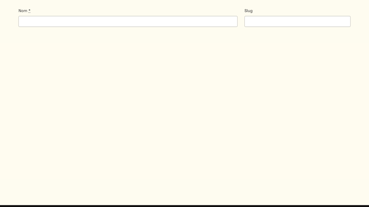 Vous pouvez entrer ici le nom de la catégorie et choisir un slug associé.