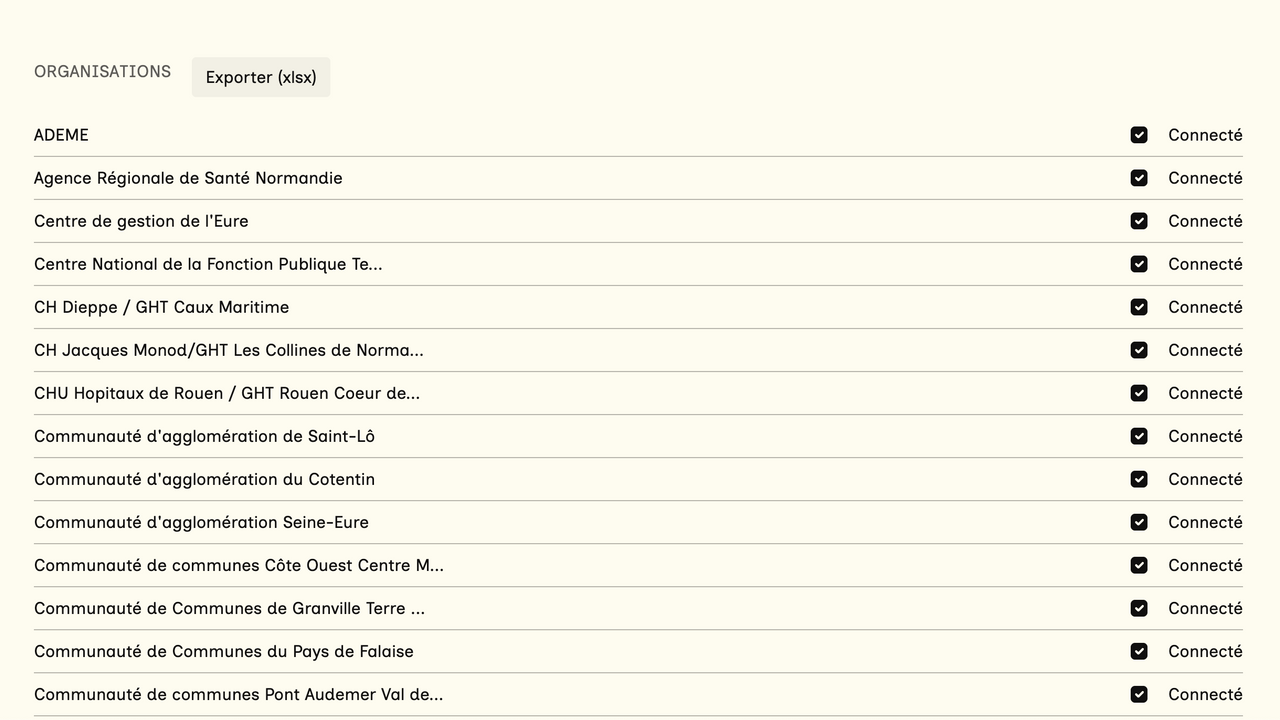 Ensuite, vous pouvez connecter toutes les organisations présentes dans votre structure à votre annuaire en cliquant sur "Connecté".