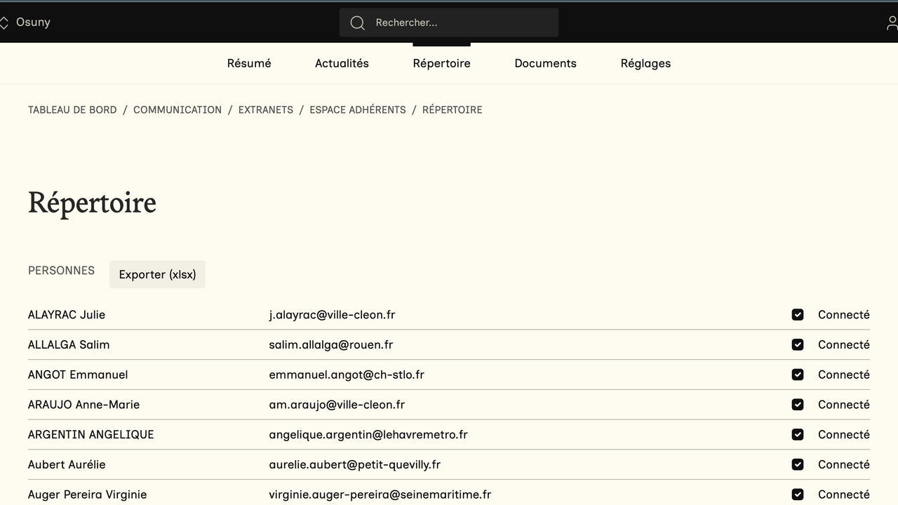Ensuite, vous pouvez connecter toutes les personnes présentes dans votre structure à votre annuaire en cliquant sur "Connecté".