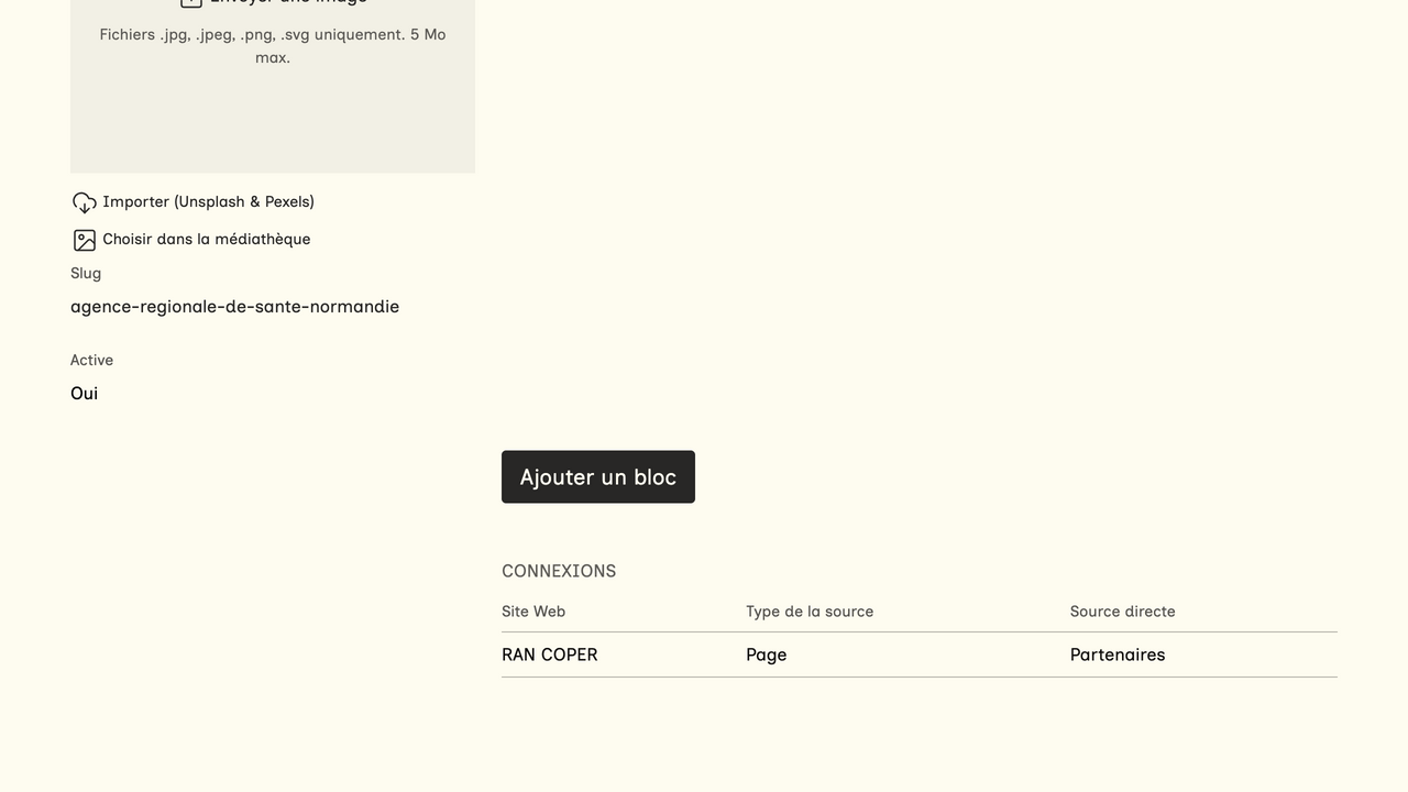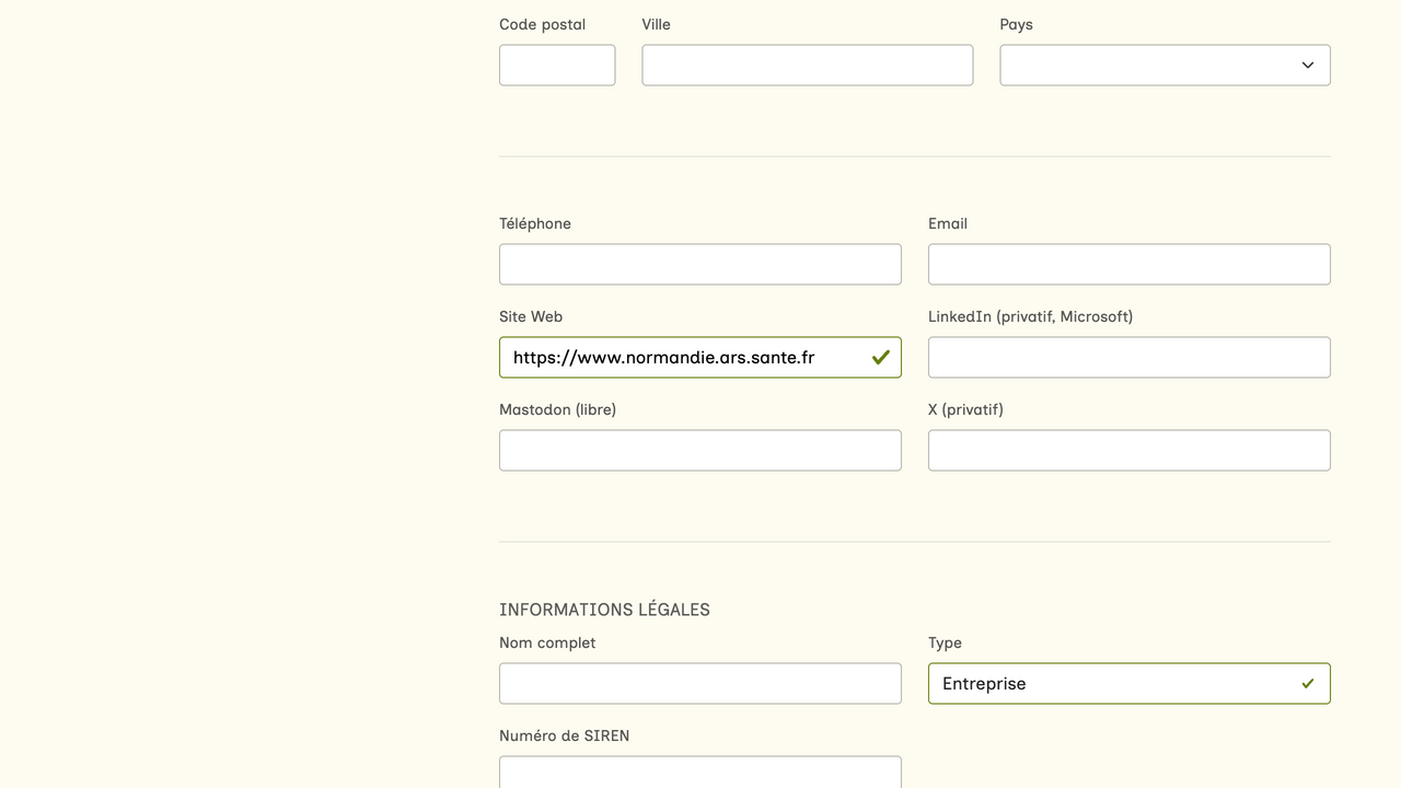 Au clic sur une fiche, vous pouvez modifier ou compléter les informations de l'organisation.