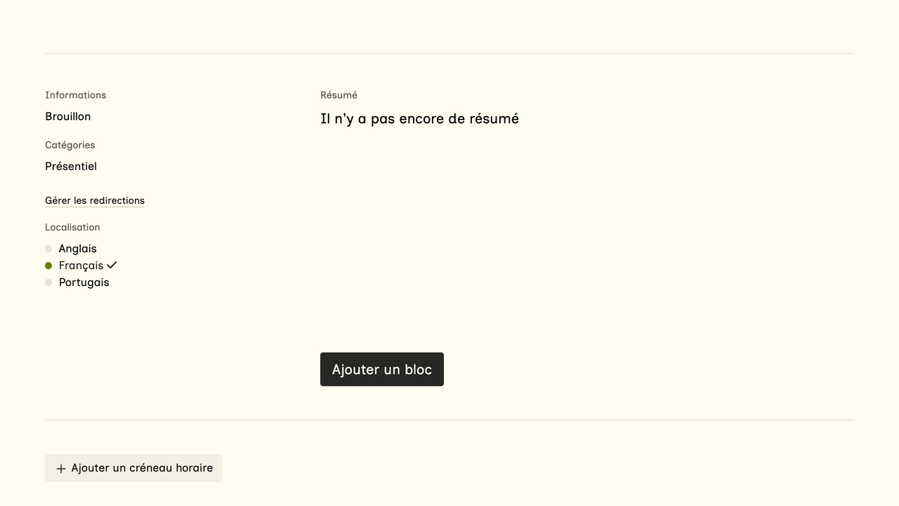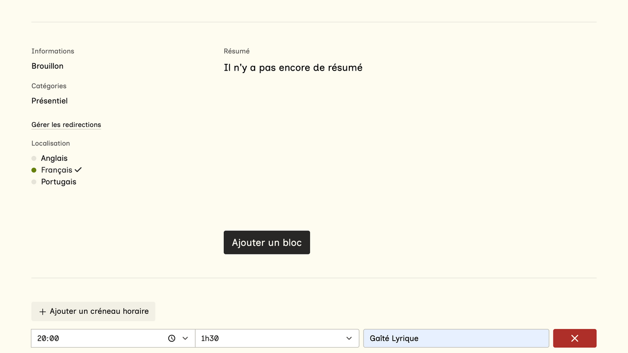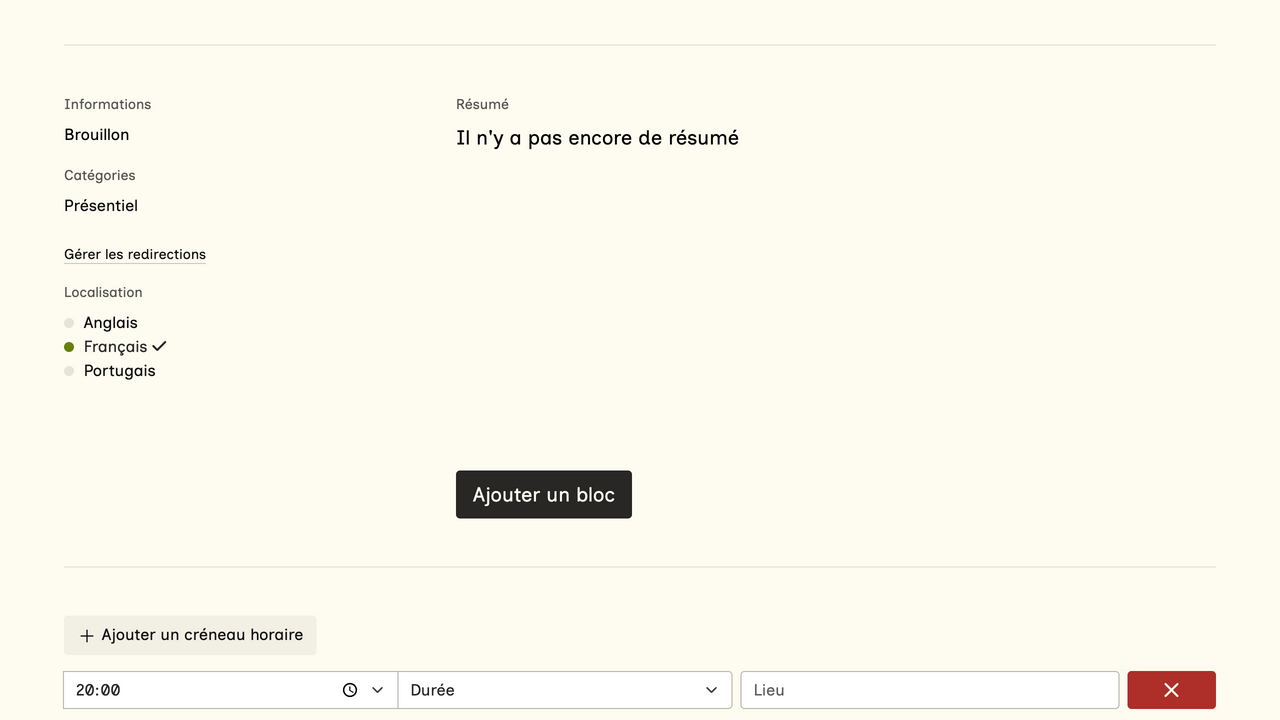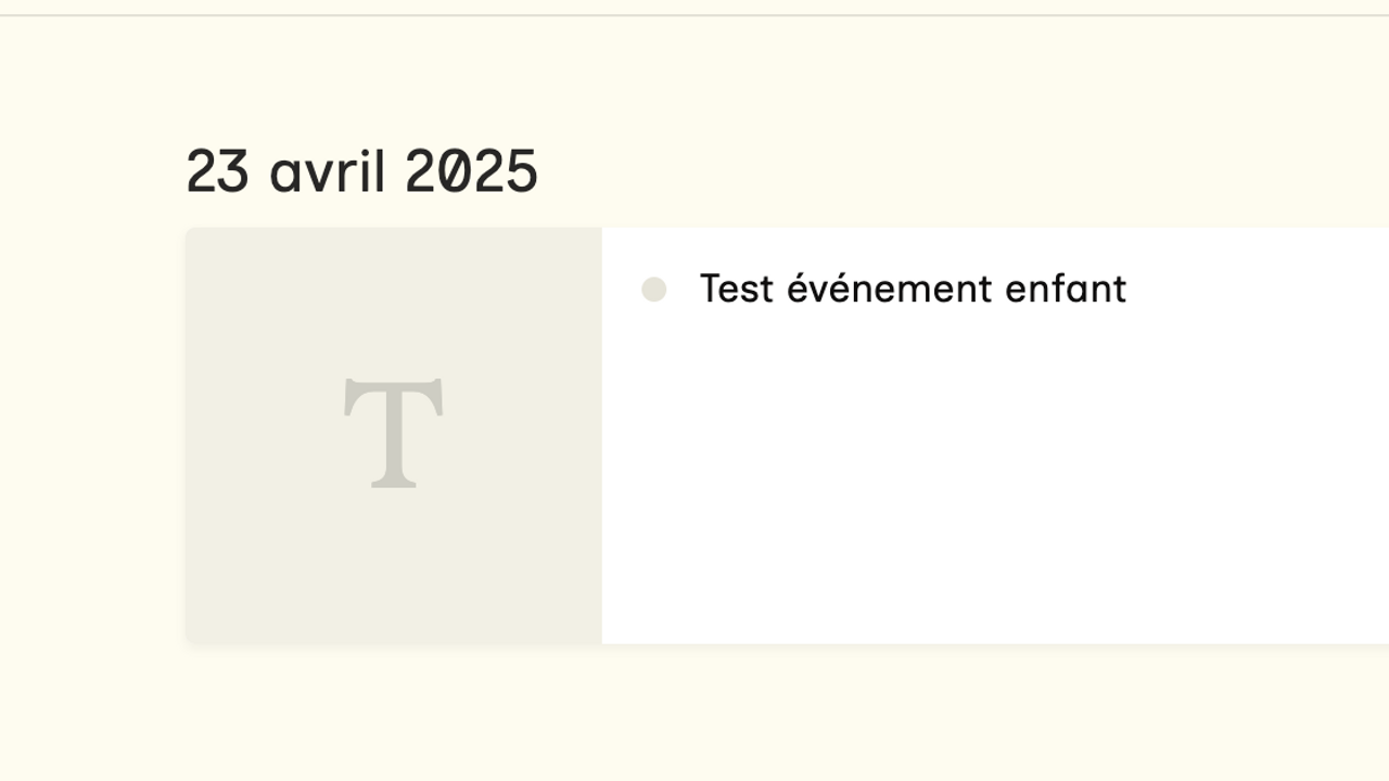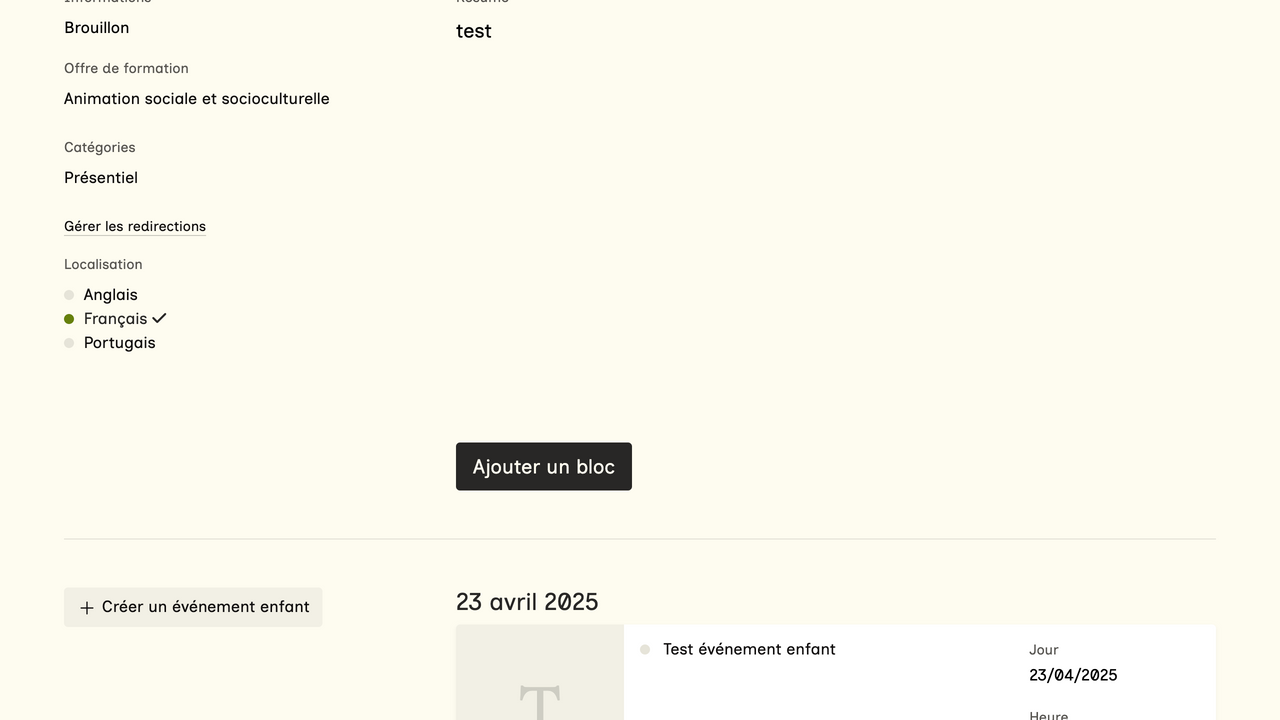 Vous pouvez rentrer les informations de l'événement créé. Il faut que la date de l'événement "enfant" soit comprise dans la plage définie dans l'événement "parent".