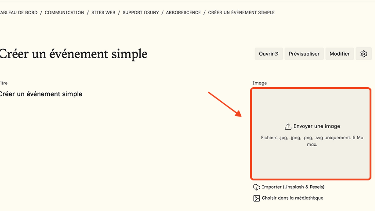 Vous pouvez illustrer votre page avec une image de votre ordinateur ou avec nos bases de données d'images libres de droits intégrées à Osuny, Unsplash ou Pexels.