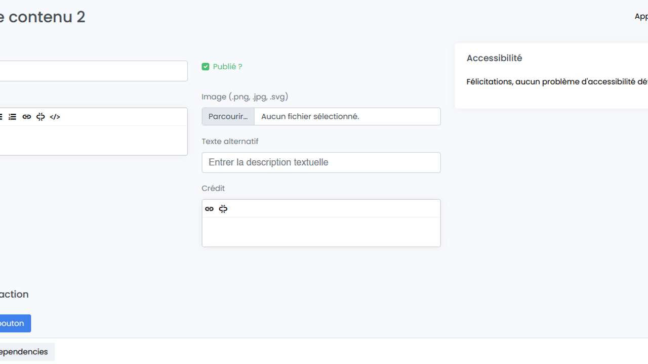 - Ajouter un ou plusieurs boutons d'action : texte / lien / ouvrir dans une nouvelle fenêtre