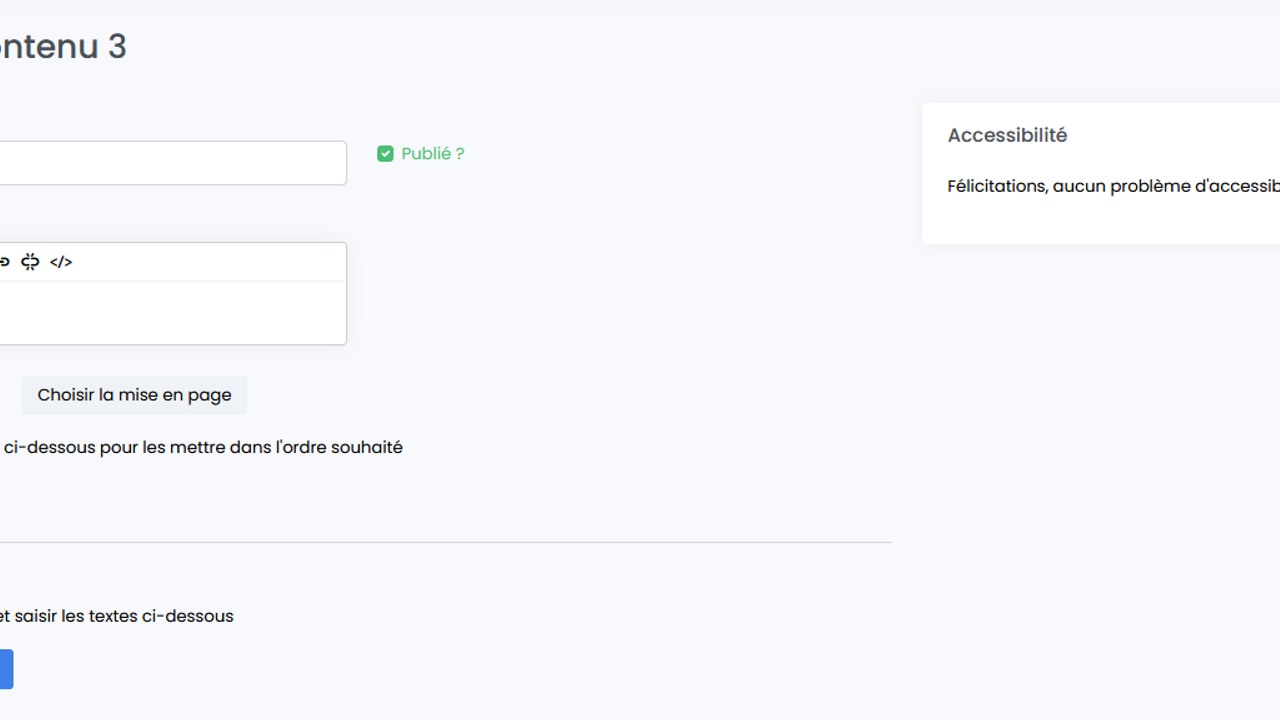 L'utilisateur peut ajouter une galerie d'images, avec pour chaque image une description accessible, un texte et un crédit. L'utilisateur rentre les champs suivants pour ajouter un bloc galerie :
