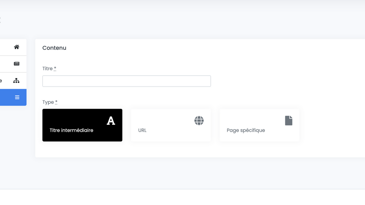 L'utilisateur modifie juste les informations essentielles ici : le titre et le type de menu choisi.